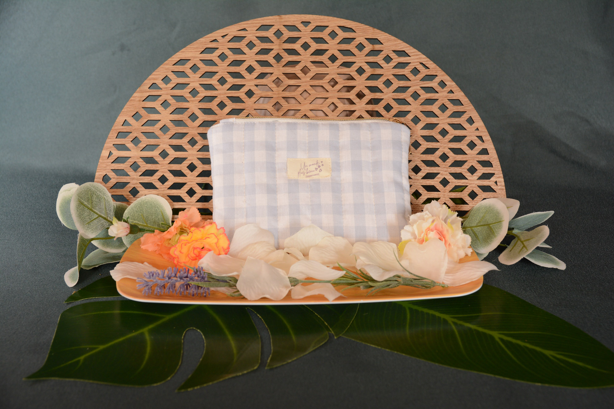 Choisissez un modèle avec une association de tissu déjà établie ou composer la votre avec la pochette personnalisable. Pour ajouter un texte personnalisé à votre produit, complétez votre commande avec l’option personnalisation.