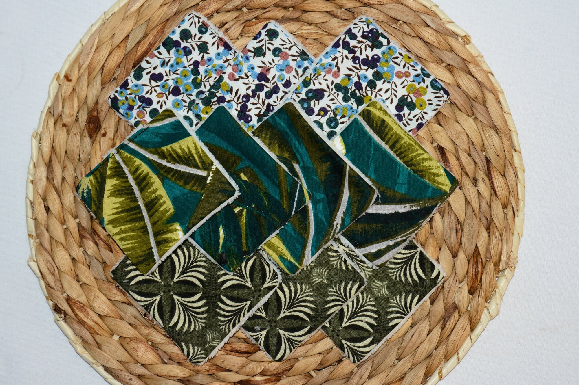 Je vous propose un lot de 10 lingettes pour avoir un roulement confortable. Chaque lot comporte 3 types de motifs différents : coté pile, c’est le tissu en coton, et côté face, de l’éponge bambou toute douce pour la peau.