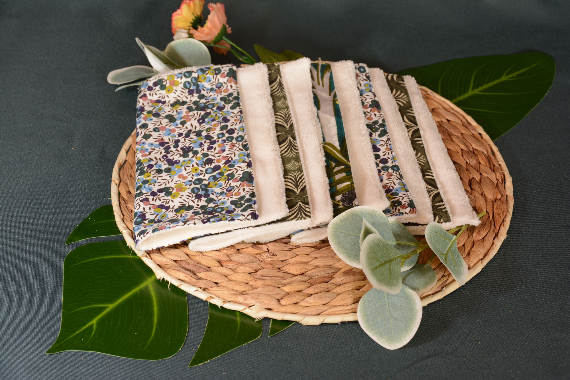Fini le jetable, bonjour au lavable. Assortissez les essuie-tout à la déco de votre cuisine. Chaque lot est composé de 5 essuie-tout. Ce lot est composé (pour les tissus à motifs) : jungle, groseilles, géo vert.