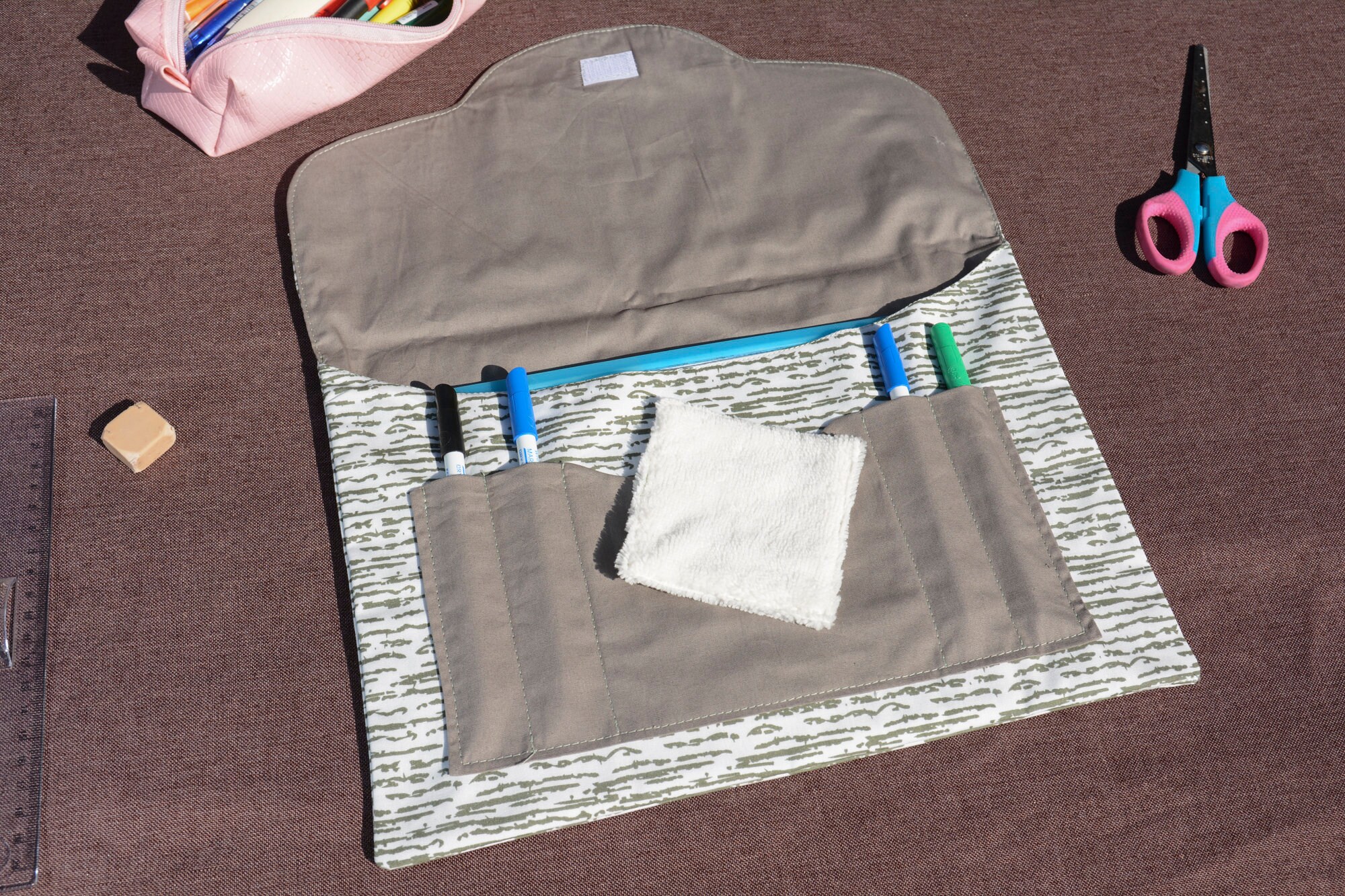 Une pochette qui servira à votre écolier pour ranger son adoise, ses feutres et une lingette qui est incluse pour son nettoyage. La personnalisation de cet article est possible en ajoutant un article supplémentaire comme option à ce produit et choisissez votre texte.