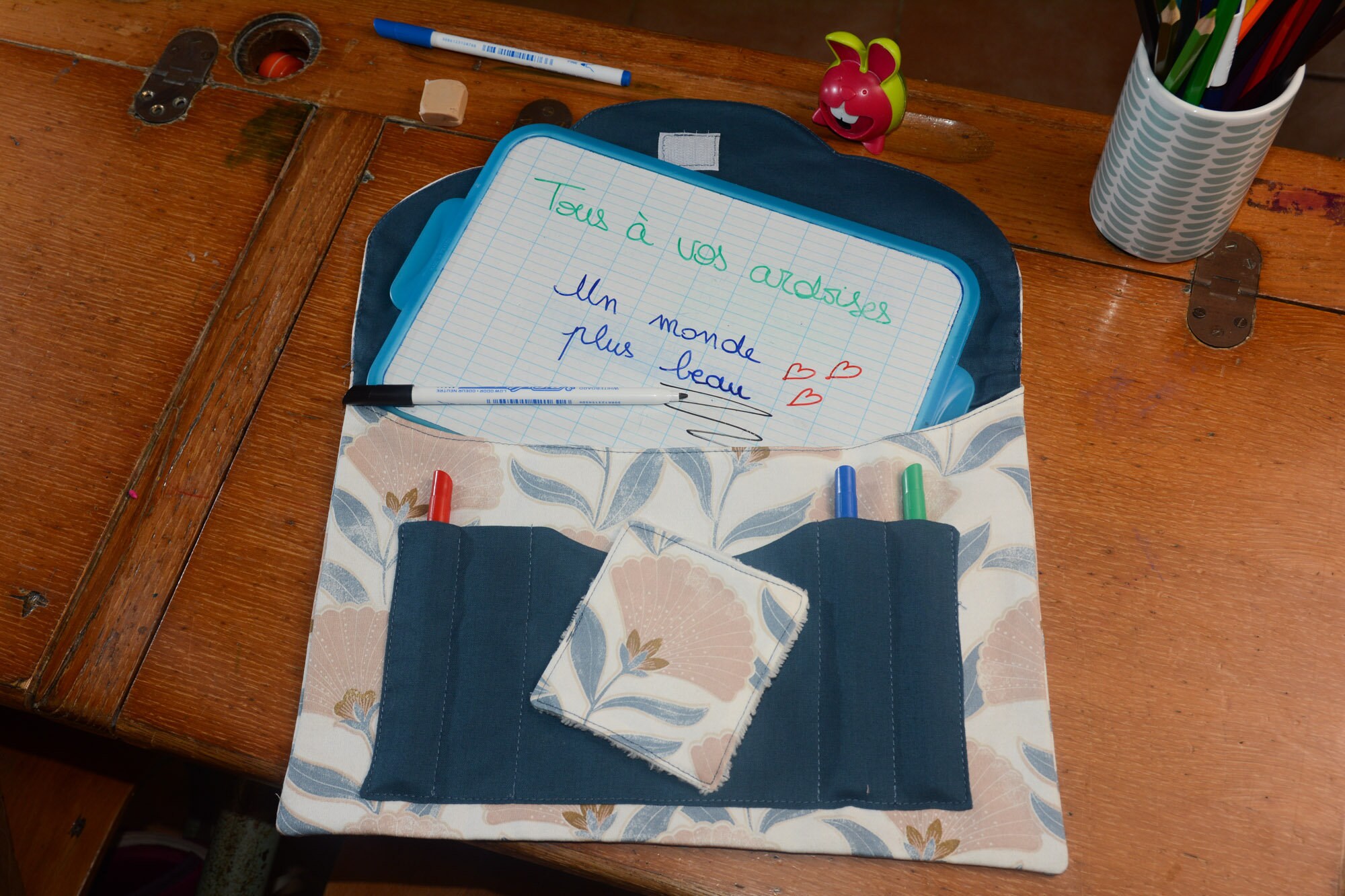 Léger, pratique et peu volumineux, il ne prendra que très peu de place dans son cartable. Astucieux, on regroupe au même endroit les stylos, l’ardoise et la lingette nettoyante.