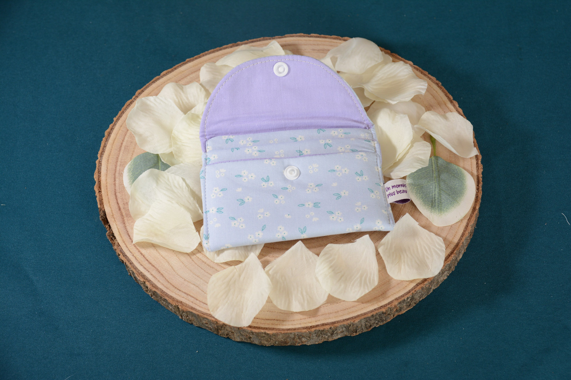 Un porte cartes qui ne prendra pas beaucoup de place dans votre sac à main. Il dispose de 3 emplacements pour ranger cartes de fidélité, papiers d’identité, monnaie… Ce produit est réalisé avec les tissus : Fleurs ciel et parme. L’option personnalisation n’est pas possible sur cet article.