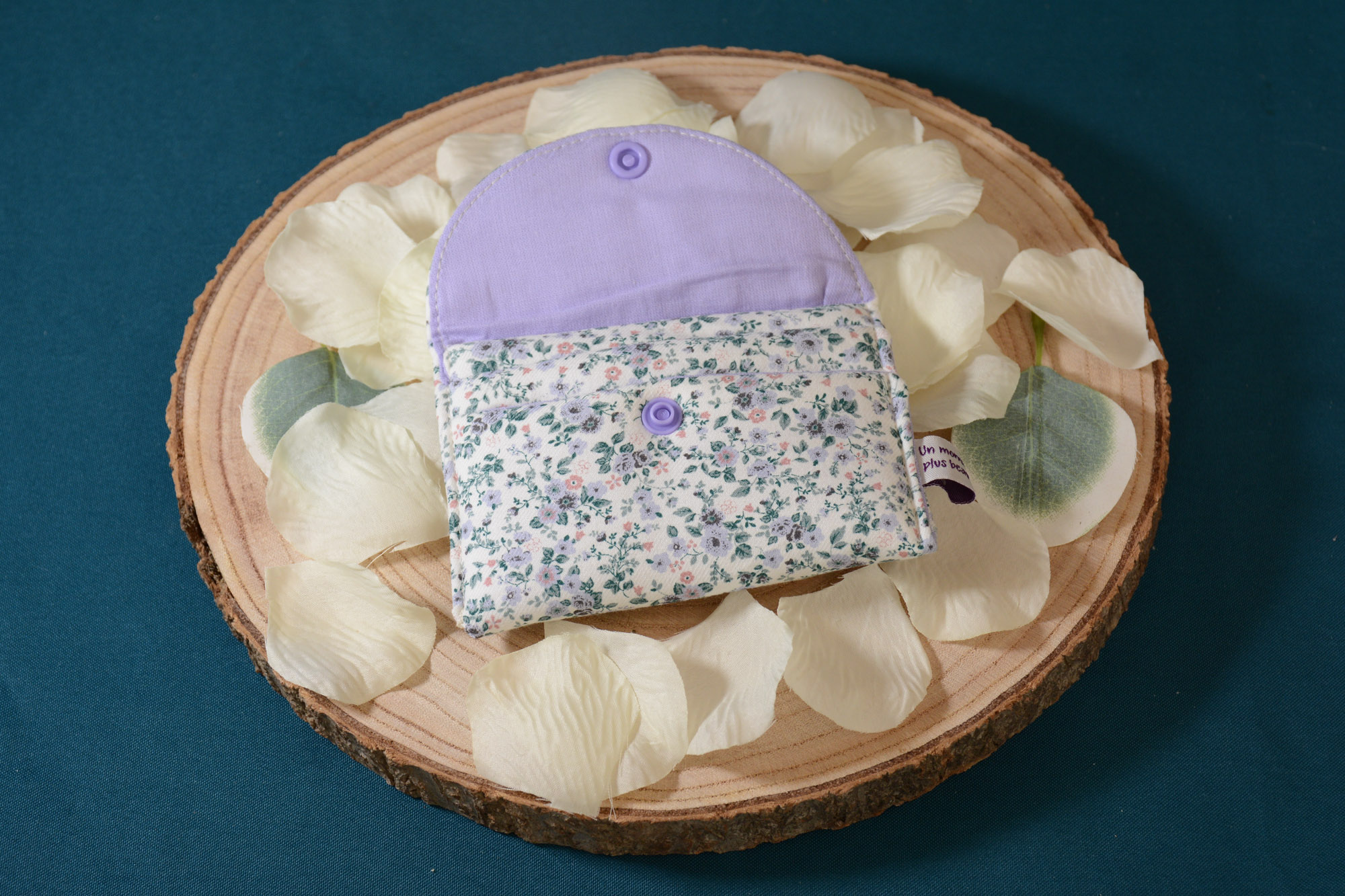 Un porte cartes qui ne prendra pas beaucoup de place dans votre sac à main. Il dispose de 3 emplacements pour ranger cartes de fidélité, papiers d’identité, monnaie… Ce produit est réalisé avec les tissus : Fleurs douces et parme. L’option personnalisation n’est pas possible sur cet article.