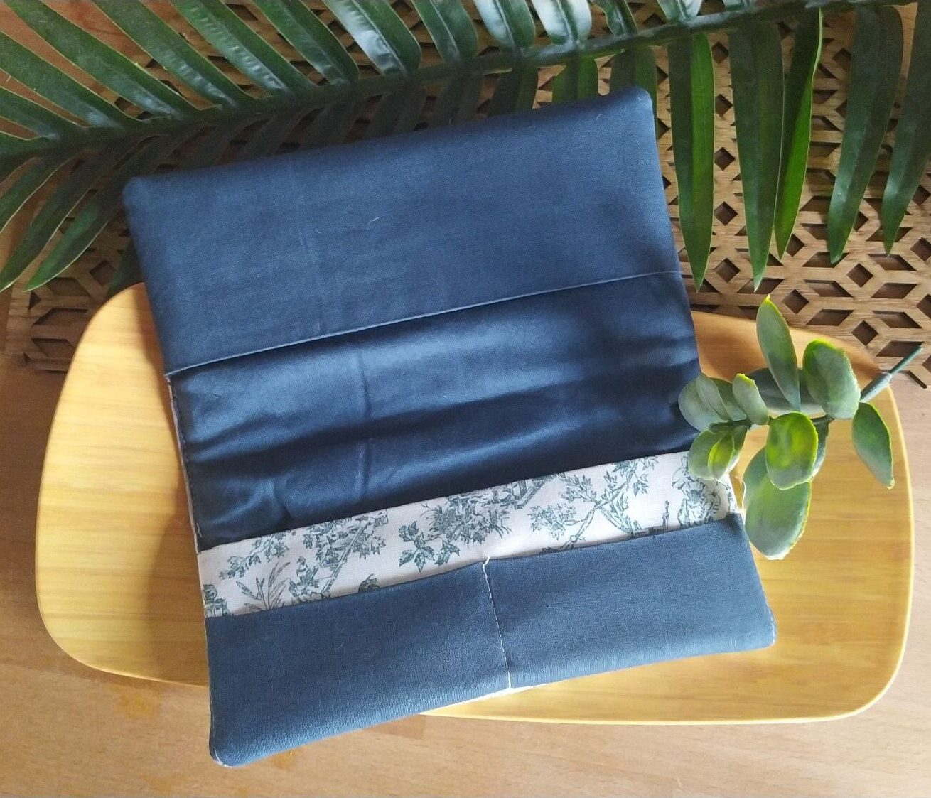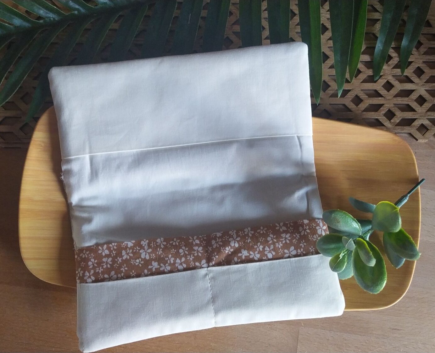 Protège chéquier réalisé avec des tissus à choisir dans la tissuthèque : un tissu uni et un tissu à motif. Indiquez les références pour la création de votre article. La personnalisation du produit est possible. Il s’agit d’un produit supplémentaire : l’option personnalisation. Ajoutez la à votre panier et ajoutez votre texte et la couleur…