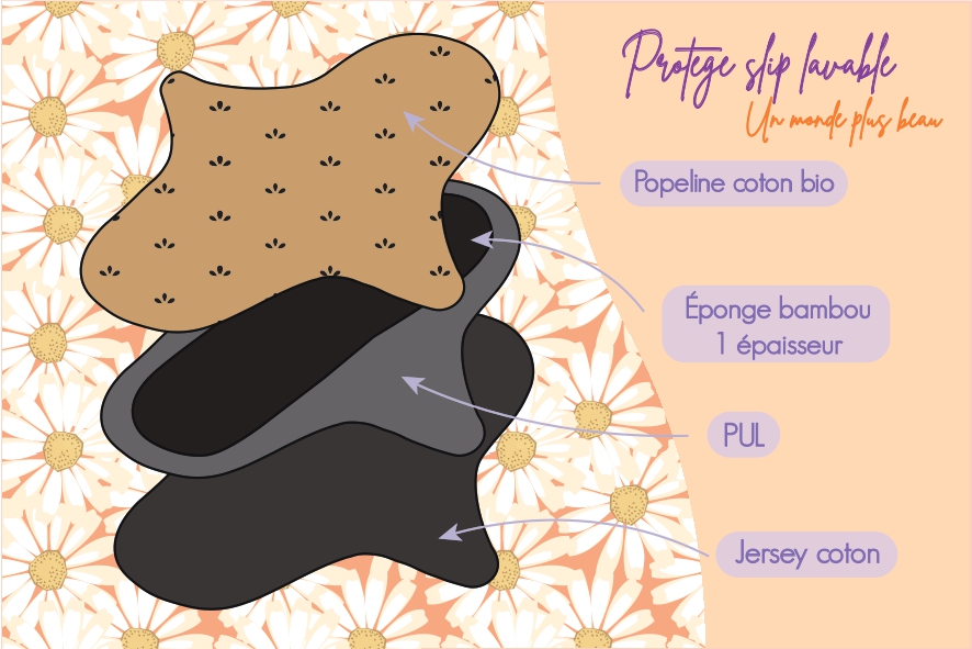 Pratique, elle existe en 3 types de taille : protège-slip, taille M (flux normal) et taille L (gros flux). Confortable, elle s’ajuste parfaitement à votre sous-vêtement. Discrète, vous ne la remarquerez même pas. Douce, elle est composée de tissu écologique (partie en contact avec les muqueuses) ou Oeko Tex. Écologique, on arrête le jetable, on lave et on réutilise en toute sécurité.