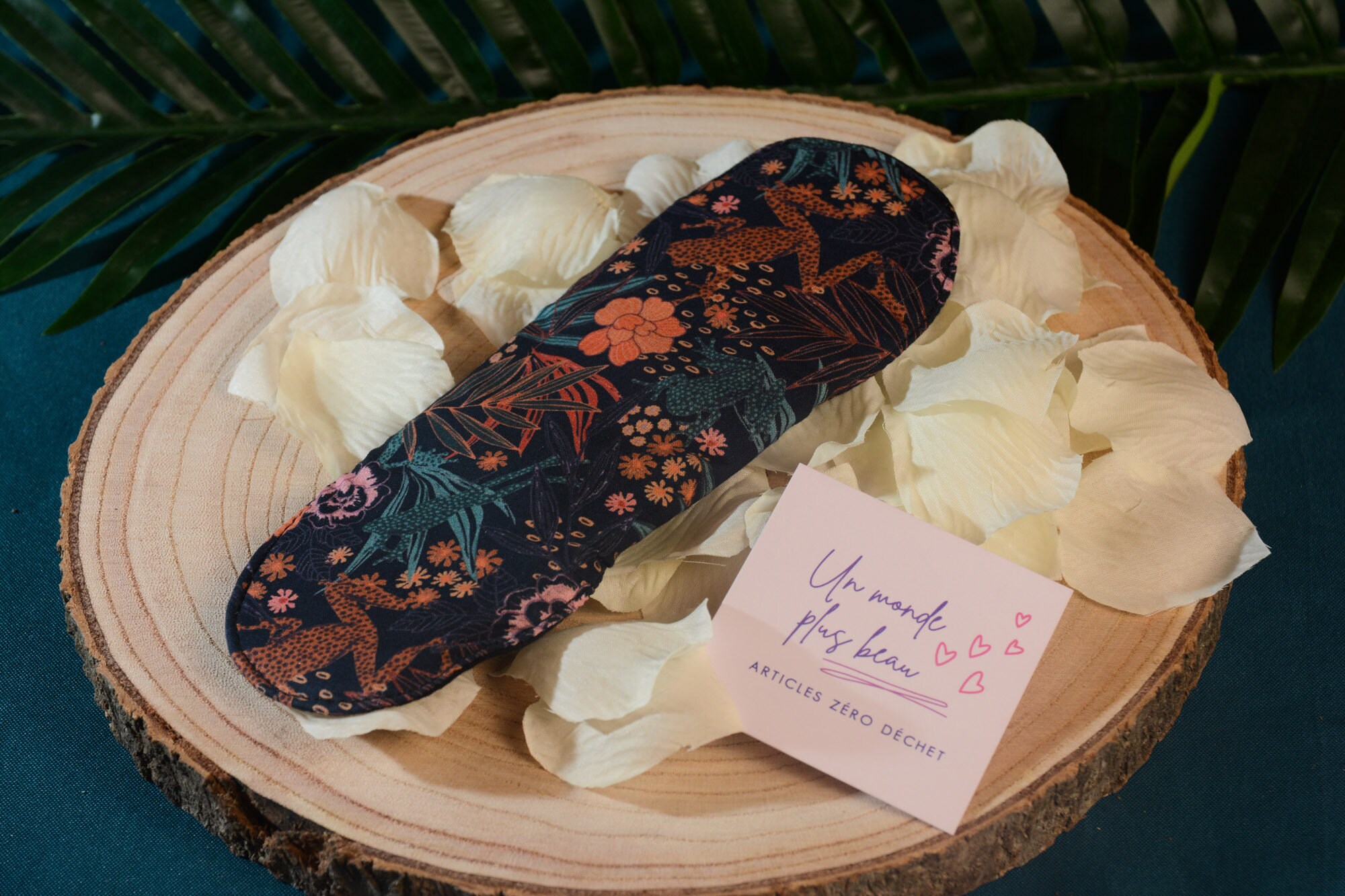 Pratique, elle existe en 3 types de taille : protège-slip, taille M (flux normal) et taille L (gros flux). Confortable, elle s’ajuste parfaitement à votre sous-vêtement. Discrète, vous ne la remarquerez même pas. Douce, elle est composée de tissu écologique (partie en contact avec les muqueuses) ou Oeko Tex. Écologique, on arrête le jetable, on lave et on réutilise en toute sécurité.